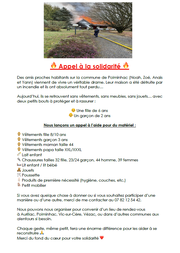 Appel à votre solidarité !